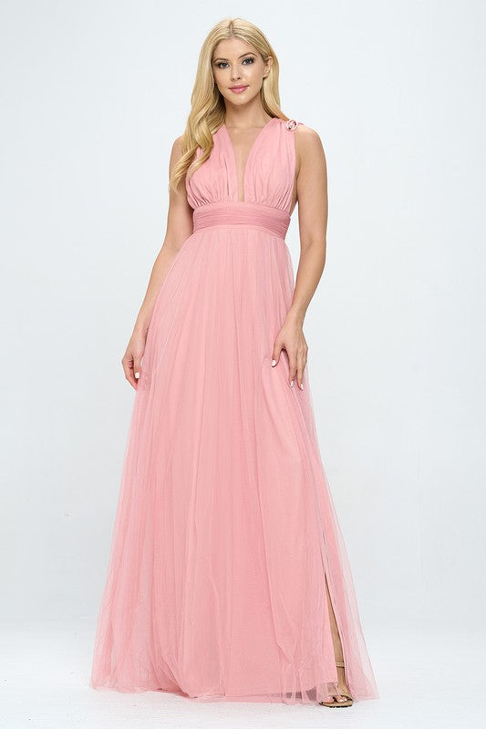 Elevate your evening wardrobe with this Plunging Neckline Layered Tulle Maxi Dress. Crafted from 100% polyester with a soft lining, it features a flattering plunging neckline and delicate layered tulle that adds graceful movement. Designed to fit true to size, this dress combines elegance with comfort. For best care, hand wash cold and hang dry to maintain its refined silhouette. Perfect for sophisticated occasions where timeless style is essential.